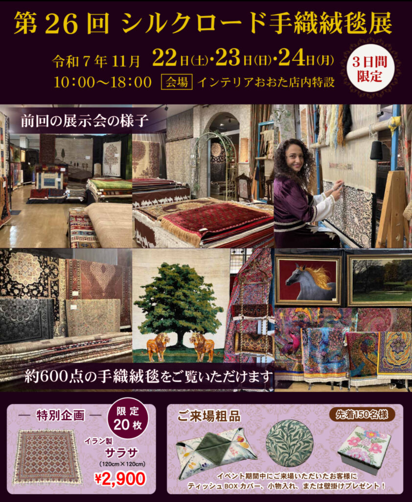シルクロード手織絨毯展も、おかげさまで今年で第26回を迎えることとなりました。