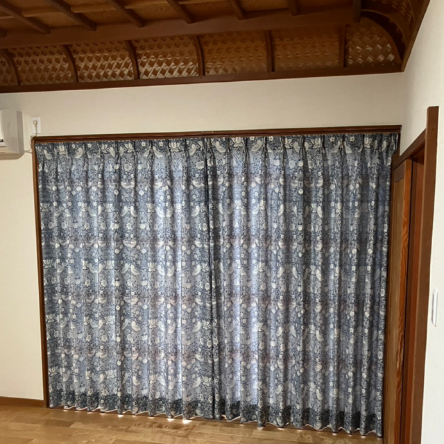 イチゴ泥棒で作ったプレーンシェードと カーテンのご紹介です✨